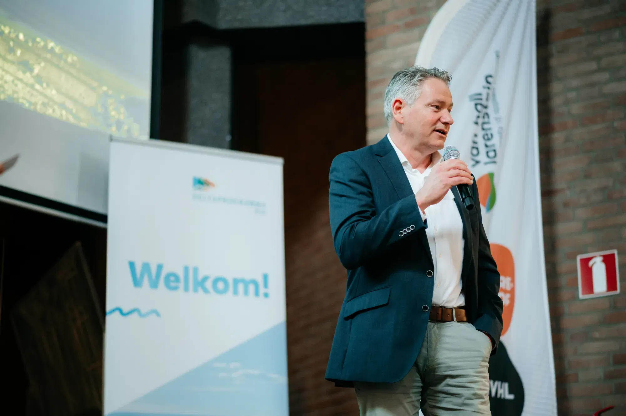 Ambtenaren, vertegenwoordigers van belangenorganisaties, bestuurders én studenten: de kapelzaal van Van Hall Larenstein in Velp was goed gevuld op de 2e Rijndag op 16 april 2025! De praktijk stond centraal, als kompas voor toekomstbestendige keuzes voor het Rijngebied. Van nieuws over beleidskeuzes voor het riviersysteem tot de regionale stresstesten en van de IJssel-Vechtdelta tot kennis uitwisselen met studenten.